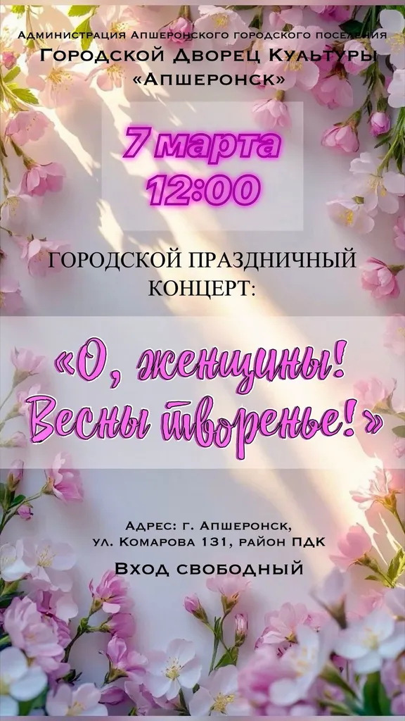 Приглашаем всех на праздничный концерт, посвященный Международному женскому Дню!